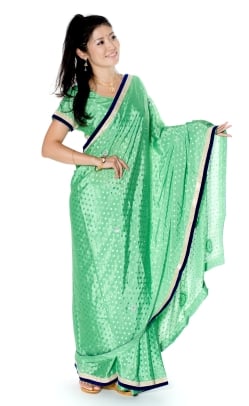ビーズ刺繍のドット柄マハラニインドサリー【チョリ付き】 - 薄緑