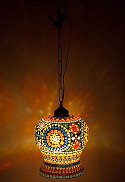 吊り下げモザイクランプ - 壺型(直径:約22cm)