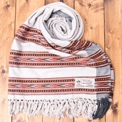 〔224cm×96cm〕ヒマラヤ山麓のクル地方伝統の大判ショール ストール - ホワイト