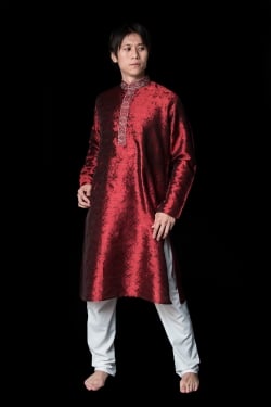 クルタ・パジャマ【光沢生地 ワインレッド】