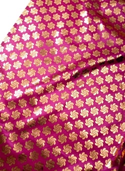 〔1m単位切り売り〕インドの伝統柄ゴールドプリント光沢布〔幅約110cm〕 - 紫
