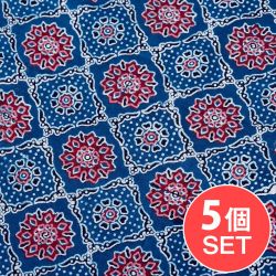 【5個セット】〔1m単位切り売り〕伝統アジュラックデザイン布 インディゴ染め ネイビー系〔幅約109cm〕