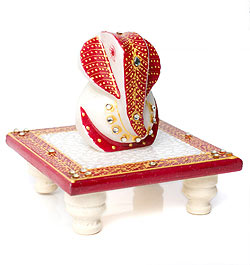 マーブルストーンのガネーシャ - 台座付き
