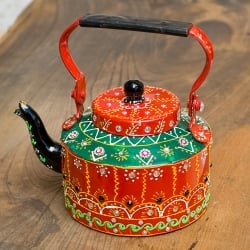 インドのデコレーションやかん - 赤×緑