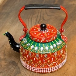 インドのデコレーションやかん - 赤×緑クリアストーンB