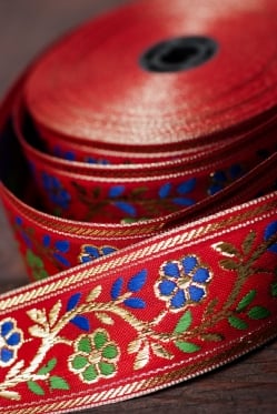 金糸入りチロリアンテープ- メーター売り(太幅 約4cm) - 赤色