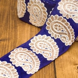 金糸ペイズリー柄チロリアンテープ(メーター売り・幅約8cm) - ネイビー