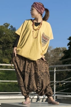 ぞうさんとお花の2WAYモモンガパンツ 【黒×茶】