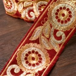金糸花草柄チロリアンテープ (メーター売り・幅 約9cm) - ベルベット・レッド