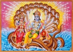 〔約70.5cm×約50.5cm〕大判インドのヒンドゥー神様ポスター - ヴィシュヌ 世界を維持する神様