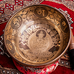 【一点物】六字咒観音菩薩 細密彫りチベタンアンティックシンギングボウル【音階:D】約1235g(スティック付属)