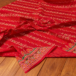 〔1m単位切り売り〕グジャラートの絞り染めモチーフ布〔幅約105.5cm〕 - レッド系