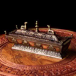 銅造り チベット香用 蓋付きお香立て 吉祥文様 【約21cm×約7.5cm】