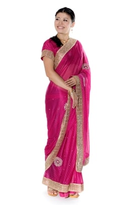 金糸とビーズ刺繍 レンガ模様のマハラニインドサリー【チョリ付き】 - マゼンダ