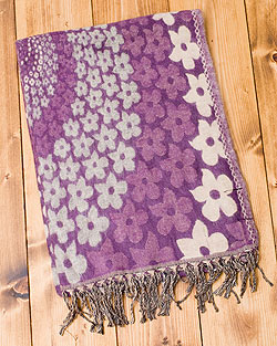 〔185cm×65cm〕ネパールの伝統柄ショール - パープルフラワー