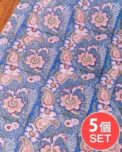 【5個セット】〔1m単位切り売り〕ジャイプル 職人手作り木版染め 色彩美しいボタニカルデザイン〔幅約111cm〕〔ブルー系 更紗柄〕 おしゃれ 生地 テーブルクロス 手芸素材などへ