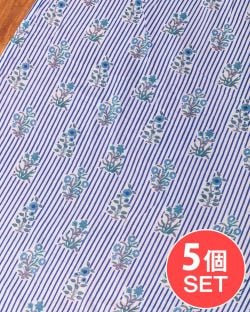 【5個セット】〔1m単位切り売り〕ジャイプル 職人手作り木版染め 色彩美しいボタニカルデザイン〔幅約113cm〕〔ブルー系 更紗柄〕 おしゃれ 生地 テーブルクロス 手芸素材などへ