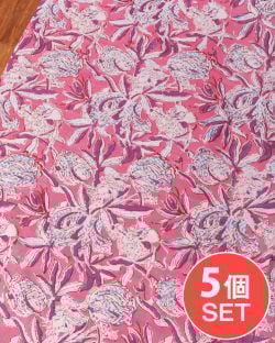 【5個セット】〔1m単位切り売り〕ジャイプル 職人手作り木版染め 色彩美しいボタニカルデザイン〔幅約108cm〕〔ピンク系 更紗柄〕 おしゃれ 生地 テーブルクロス 手芸素材などへ