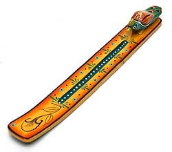 木製ハンドペイントお香立て - 孔雀