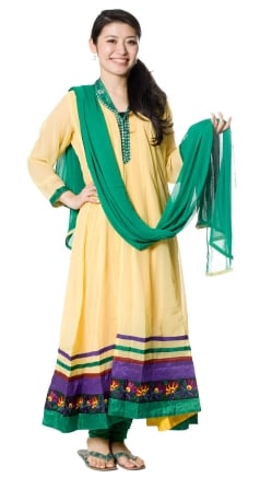 パンジャビ・ドレス3点セット - イエロー