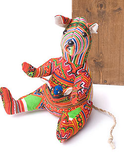 モン族の手作りぬいぐるみ - 子連れカンガルー カラフル系