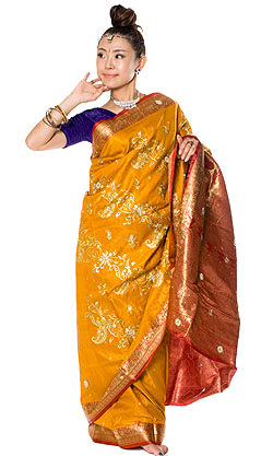 ベナレスのインドサリー【金糸刺繍ゴージャス】 黄色