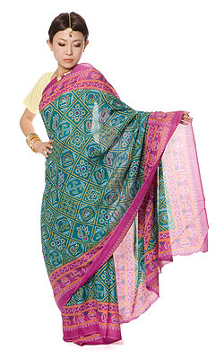 インドサリー【ドット模様系】 エメラルド×紫