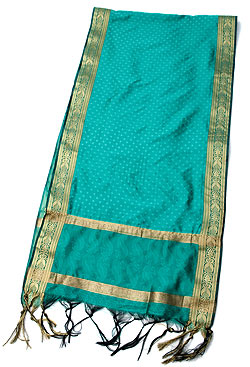ボーダー入り 光沢スカーフ・デコレーション布 - 格子・エメラルド