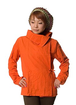 ウッドボタンのカシュクールジャケット 【ライトオレンジ】