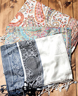 〔200cm×70cm〕インド更紗 伝統チンツ柄ストール - 白・グレー系アソート