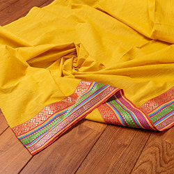 南インドのハーフボーダー・シンプル・コットン布〔幅約110cm〕 - オレンジ系
