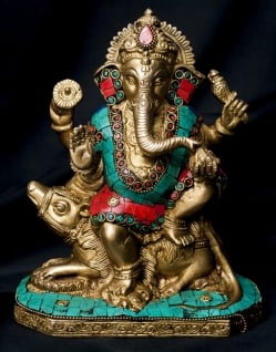 【一点もの】緑青石装飾のガネーシャ[高さ:19.5cm]