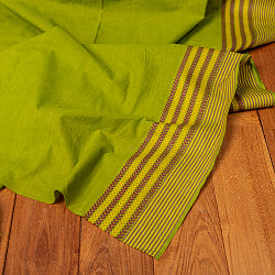 〔1m単位切り売り〕南インドのハーフボーダーコットンクロス〔幅約108cm〕 - グリーン