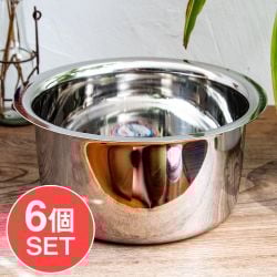 【6個セット】取っ手のないインドの鍋 バゴーナー パティラ 容量:3L程度 外径:約23cm ステンレス製