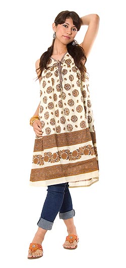 フラワープリント リボンワンピース 【ベージュ】