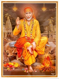 〔約40.5cm×約30.5cm〕輝くラメ入り・インドのヒンドゥー神様ポスター - シルディ・サイ・ババ