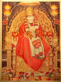 〔約40cm×約30cm〕インドのヒンドゥー神様ゴールドポスター - シルディ・サイ・ババ