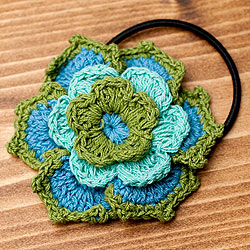 手作りコットンのお花ヘアゴム - 青×水色×緑
