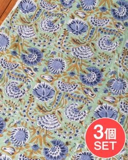 【3個セット】〔1m単位切り売り〕ジャイプル 職人手作り木版染め 色彩美しいボタニカルデザイン〔幅約108cm〕〔グリーン系 更紗柄〕 おしゃれ 生地 テーブルクロス 手芸素材などへ