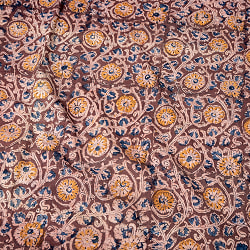 〔1m単位切り売り〕伝統息づく南インドから 昔ながらの木版染め更紗模様布〔約106cm〕 - 焦げ茶