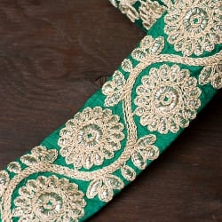 金糸花草柄チロリアンテープ (メーター売り・幅 約8cm) - 緑
