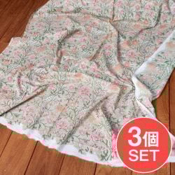 【3個セット】〔1m単位切り売り〕ジャイプル 職人手作り 色彩豊かなボタニカルデザイン おしゃれ 生地 花柄 テーブルクロス 刺繍素材などへ〔幅約112cm〕 - ライトグリーン系