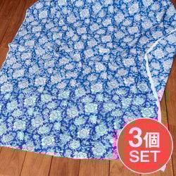 【3個セット】〔1m単位切り売り〕ジャイプル 職人手作り 色彩豊かなボタニカルデザイン おしゃれ 生地 花柄 テーブルクロス 刺繍素材などへ〔幅約113cm〕 - ブルー 系
