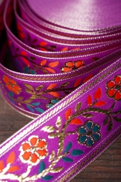 金糸入りチロリアンテープ- メーター売り(太幅 約4cm) - 赤紫