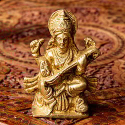 サラスヴァティ坐像 重厚なブラス製 高さ10cm