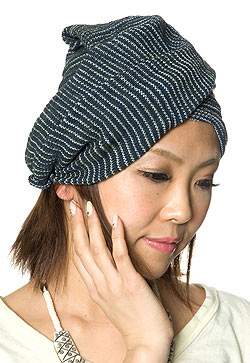 何通りも楽しめる!魔法のターバン 【ネイビー×白】