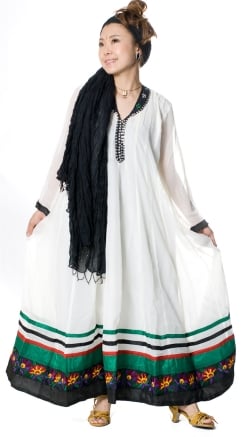 パンジャビ・ドレス3点セット - 白