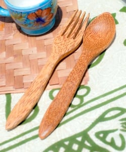 ココナッツのスプーン・フォークセット 約20cm