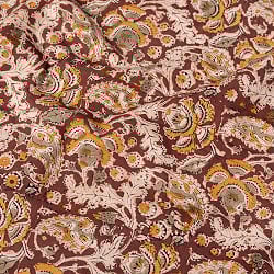 〔1m単位切り売り〕伝統息づく南インドから 昔ながらの木版染め更紗模様布 - 茶色系〔横幅:約115.5cm〕