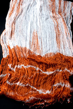 インドの薄ショール クリンクル タイダイドゥパッタ - ブラウン